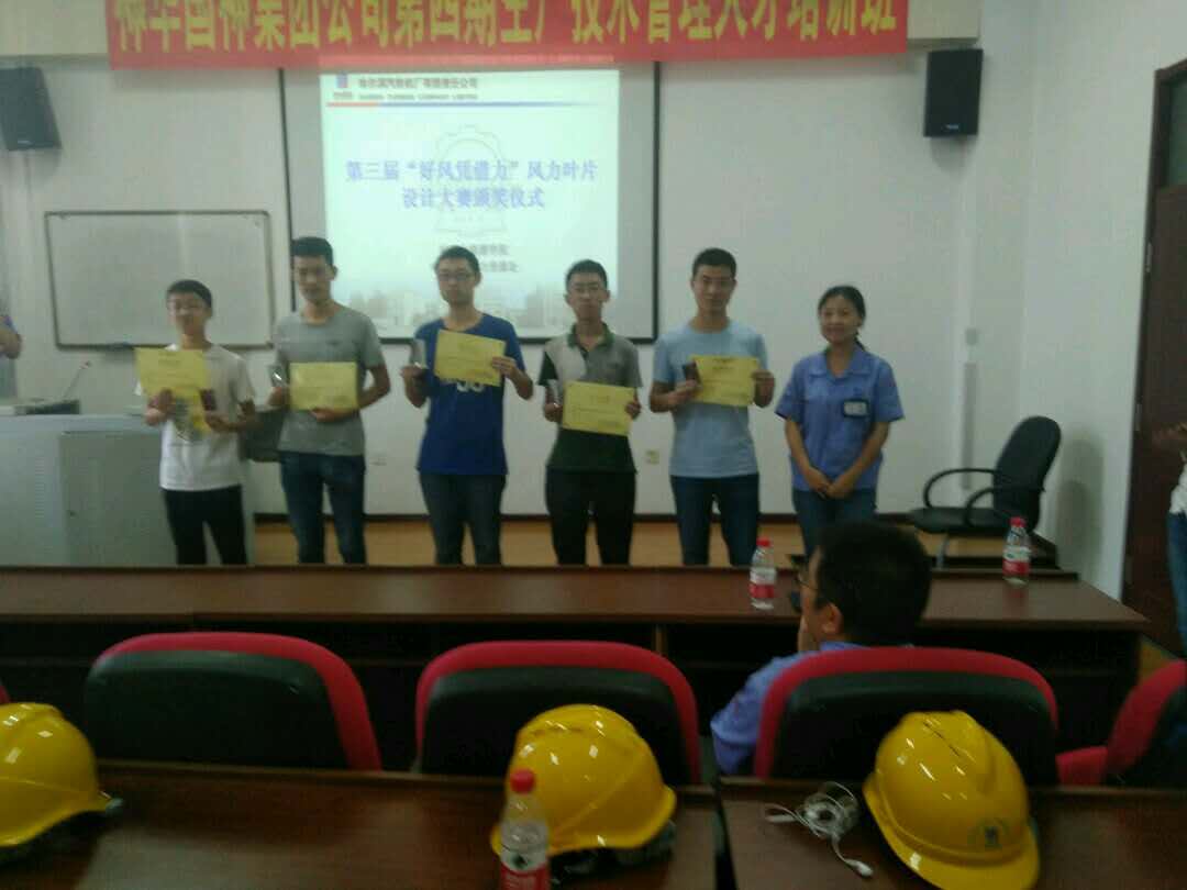 第三届“好风凭借力”风力叶片设计大赛获奖团队代表一行25人赴哈尔滨汽轮机厂有限责任公司进行参观访问,并举行了大赛的颁奖仪式。