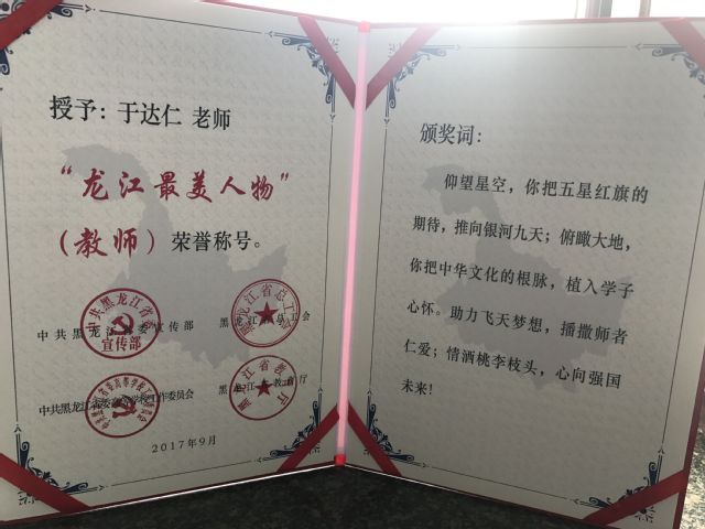 我校于达仁教授荣获“龙江最美人物”(教师)