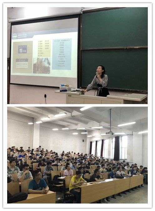 然后李威老师向同学们讲述了“源梦青春”的四个努力方向分别为认清自己、认清环境、认清机会、认清未来。首先进入大三后,同学们要对自己的专业有更深入的理解和掌握,明白专业的培养目标和定位,从而努力提高自己的专业建树和个人能力,须知打铁还需自身硬。其次要认清环境,时刻关注自己的各科学分是否修足,并努力备战期末和重修考试,还要重点关注自己的人身安全和身边的各种诱惑与危险。然后要认清机会,明确自己的大四方向,在读研、出国、就业中做好慎重规划、选择和准备,通过大量详实的数据和清晰的统计图,让大家对各个方向都有了更深入了解,台下学生们被深深吸引,同时也对自己未来可能的选择方向有了清晰的理解。最后希望同学们能够认清未来,努力对照学校的人才培养目标和自身的人生发展目标,树立哈工大自信,展现哈工大精神,努力争做向上有为的新青年。