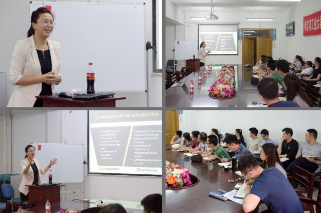 外国语学院国际语言中心(筹建)的孟勐、黄芙蓉、赵毓琴、杨莉萍、赵嘉影、常青、顾晓乐老师成立的英文科技论文写作工作坊近日在老虎机平台(中国)官方网站 动力楼529会议室进行了第二、三次讲座。常青老师于5月31日带来的主题为“Discussion撰写结构”的讲座报告,孟勐老师于6月14日带来的主题为“行文撰写要点”的讲座报告。继顾晓乐老师关于“Introduction撰写模式与逻辑结构”的首次讲座之后,常青老师与孟勐老师进一步对英文论文其他部分的撰写提出了具体的指导思想及关键要素。