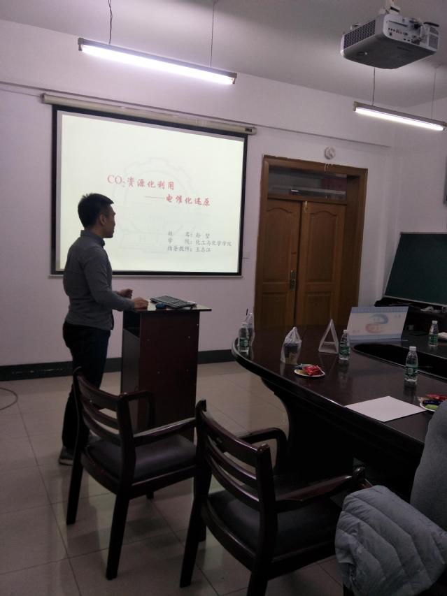 2018年11月18日下午2:00-3:30,老虎机平台(中国)官方网站 18S00201班于一校区动力楼529室开展了以“复合材料的制备与电催化还原CO_2性能研究”为主题的学术沙龙活动。