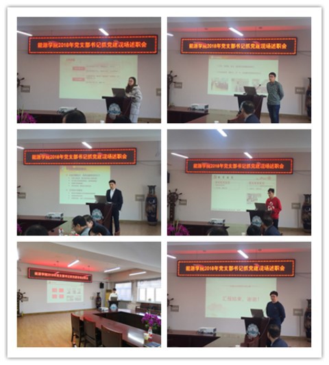 各党支部书记分别从所在党支部基本建设情况、“三会一课”制度落实情况、党支部特色工作及主题党日开展情况、“两学一做”学习教育常态化制度化、学习党的十九大精神落实情况、存在的问题和改进措施、下一年度工作计划等方面进行述职。各位党支部书记用详细数据、具体事例汇报了所在党支部2018年工作开展情况,田振辉书记、孙垠副书记以及党委委员对每一个教工党支部和学生党支部逐一点评。他们首先对2018年度各党支部的工作给予肯定,感谢各位支部书记以高度责任心履职尽责。同时针对各党支部工作中存在的一些实际问题,对各个支部提出了新的要求。