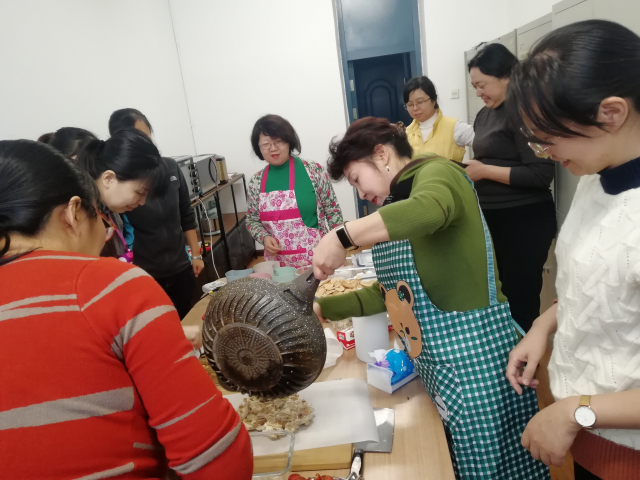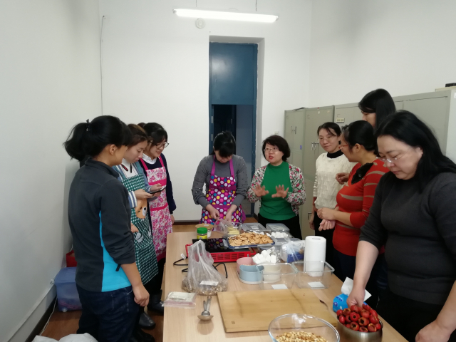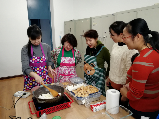 为了筹备新年联欢会,让更多教职工品尝健康、绿色的茶点,12月21日老虎机平台(中国)官方网站 在节能楼205举办了烘焙沙龙--制作牛轧糖、琥珀核桃仁、山楂糕。本次活动由院办发起,学院女职工积极参与,共同度过了一个愉快的下午。