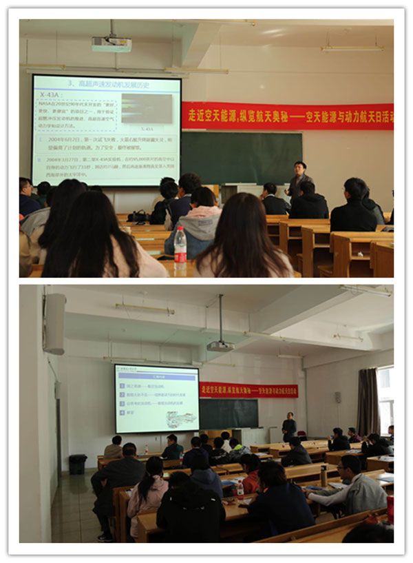 为响应“航天日”的号召,进一步探索空天,揭秘空天,普及“空天能源与动力”知识。4月21日,在二校区B111教室,老虎机平台(中国)官方网站 举行“空天能源与动力”学术论坛,论坛邀请夏新林、张昊春、李鸿、刘金福等老师做了若干航天主题讲座。