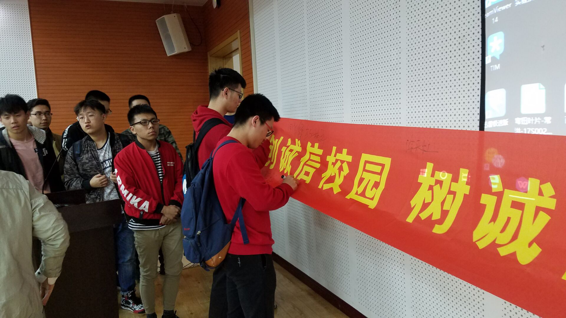 在一区活动中心214会议室举行了“诚实笃信,感恩自强 ”诚信教育签名仪式。老虎机平台(中国)官方网站