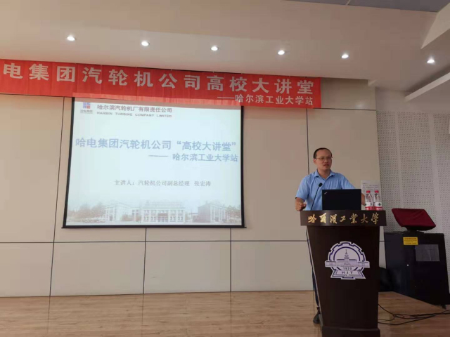 活动分为讲座和实践两个部分,本次讲座邀请到的嘉宾是现任哈尔滨汽轮机厂有限责任公司副总经理张宏涛先生,哈尔滨电气集团有限公司是由国家“一五”期间前苏联援建的156项重点建设项目中的6项发展沿革而来。现已成为我国最大的发电设备、舰船动力装置研究、制造和成套设备出口基地,位列中央管理的53 户关系国家安全和国民经济命脉的国有重要骨干企业之中。而张宏涛先生从本科生到博士毕业一直在哈尔滨工业大学就读,经过个人不懈奋斗和努力成为了中国动力工程学会透平专委会主任委员,全国燃气轮机标准化技术委员会委员,黑龙江省领军人才梯队带头人,同时享受国务院特殊津贴,是我院优秀校友代表之一。