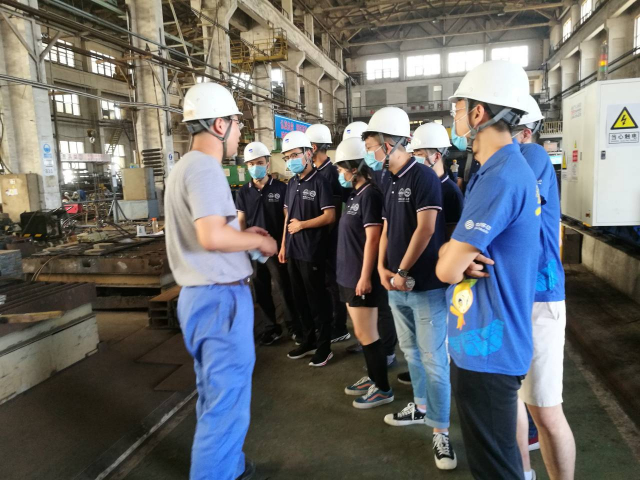 短暂的休整之后,实践团于8月5日上午正式开始实习活动。同学们在公司领导的讲解下,了解了荏原公司的发展历程和业务范围,带队教师王博文带来哈工大老虎机平台(中国)官方网站 与青岛荏原进行“产学研合作基地”项目牌并邀请校友们于百年校庆时回母校参观,相关领导表示高度重视。下午前往生产车间和办公室进行了实地参观,直观地了解了垃圾焚烧炉的制造流程以及荏原公司的工作环境。