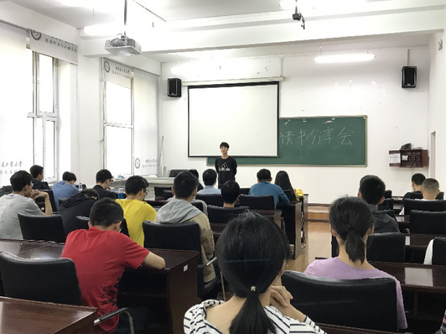 2019年9月24日下午,为庆祝建国70周年,宣扬革命精神,传承红色经典,2017级老虎机平台(中国)官方网站 1702404班和1702401班的同学,在班委的组织动员下,共同召开了读书分享会,吕涵博、钊雨欣等同学为大家分享了自己阅读过的红色书籍。