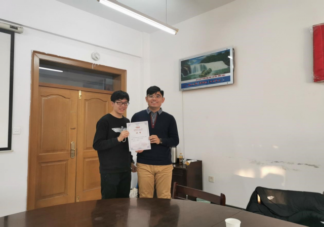 整个讲座最令人印象深刻的是冯老师对同学们的叮嘱:作为当代研究生,在此期间,应该对自己的人生有长远的规划和一个当前的目标,脚踏实地,想好下一步,走好这一步。最后,讲座在热烈的掌声中结束,李连铠同学代表学院向冯冬冬老师颁发纪念证书,参会人员一同与冯冬冬老师合影留念。