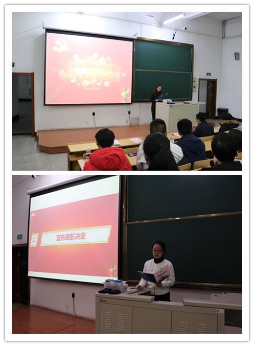 在庄严的国歌声中,结业典礼正式开始。由人文学院党委副书记王玉楠老师宣读本期分党校的宣读结业决定与表彰决定,并由人文学院党委副书记及外国语学院党委副书记为优秀学员颁发证书。