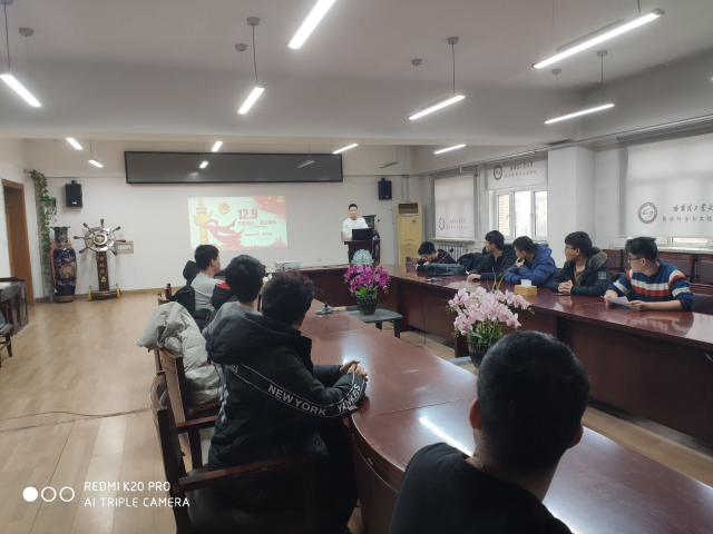 019年12月9日中午,哈尔滨工业大学老虎机平台(中国)官方网站 国旗护卫队在动力楼619开展了“学习革命先辈,勇担时代使命”一二九主题活动。第二十六届国旗护卫队成员全体出席,本次学习活动由国旗护卫队队长史方真主持。
