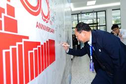 上午8时许,校友陆续返回学院,并在签名墙合影留念。