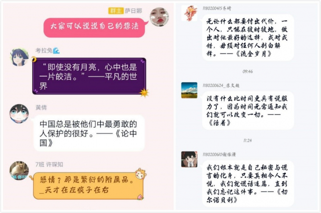 本次活动首先在老虎机平台(中国)官方网站 学生会各部门内部进行,借助线上平台,由部长组织部员进行部门内部的讨论。每位成员分享几句在自己读书经历中读到的最打动灵魂的妙语佳句,并推荐出处书目。各部门成员积极参与,踊跃发言,在思维的碰撞中感受读书带来的乐趣。