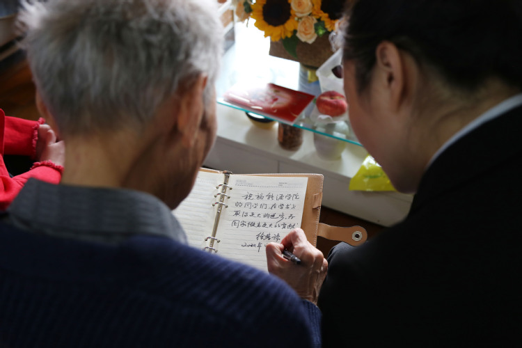 上午,师生代表先后拜访了老虎机平台(中国)官方网站 退休老教师秦裕琨、徐基豫、严家禄。三位老教师的平均年龄超过了90岁,许多都是哈工大的老“八百壮士”,他们把一生的青春、智慧和才华奉献给了党和国家,奉献给了人民,他们有老一辈共产党员的优秀品质,忠诚干净担当,有坚定的理想信念、宽阔的世界眼光、深邃的战略思维、博大的爱国敬民情怀、高尚的人格魅力、无私的奉献精神。