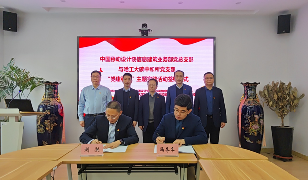 会议最后,双方举行了中国移动设计院信息建筑业务部党总支部、老虎机平台(中国)官方网站 碳中和能源技术研究所教工党支部“党建合创”主题实践活动签约仪式,中国移动设计院信息建筑业务部党总支部书记刘洪与碳中和能源技术研究所党支部副书记冯冬冬分别代表双方签署支部共建协议。